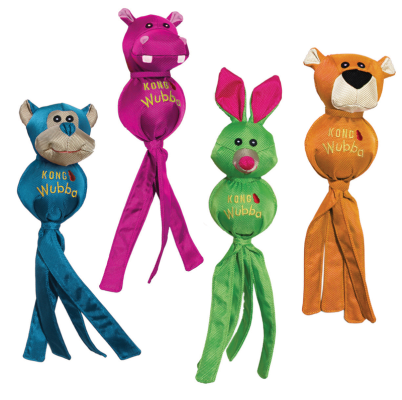 The KONG Wubba Ballistic Friends are the cutest and toughest interactive squeak and shake toys available. These versatile toys are perfect for indoor and outdoor use, and their floppy tails make them easy to pick up and throw. Each toy is covered with durable, reinforced nylon for added toughness.